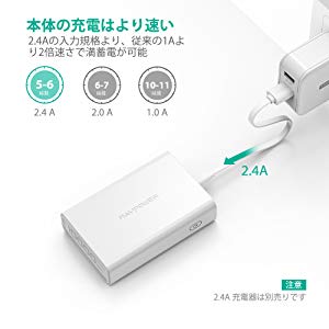もう充電切れの心配はありません。2.4Aの入力により、従来の1Aより2倍速くなり、約5時間で満蓄電できます。