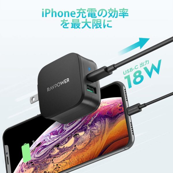【 急速かつ無駄のない充電技術 】USB-C PD充電&USB-A QC充電ポートを装備; PDまたはQCポートを単独で利用すれば、最大出力18W/3Aで急速充電ができます。iPhone XS Maxを従来より2時間早くフル充電。2つのポートを同時に利用した場合、最大出力5V/3Aを共有して充電できます。また、iSmart 2.0を搭載し、接続されたデバイスに応じ、自動的に最適な充電を行います。